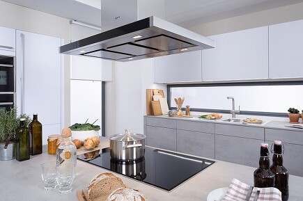 Natürlich gibt es auch Dunstabzugshauben, die flächenbündig mit der Decke eingebaut werden oder sich nach dem Gebrauch in diese zurückziehen. Doch auch bei dieser Lösung steigen die Dampfschwaden – Wrasen genannt – steil auf. Gerade für Brillenträger ist das unangenehm, wenn die Gläser beim Kochen in einem fort beschlagen sind. – Gerne beraten wir Sie zu den verschiedenen Möglichkeiten, die es gibt.